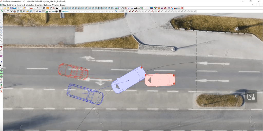 Conclusion: Through this Pre-Collision Analysis, we’ve examined the dynamics leading up to the accident, considering the blue car’s turning procedure and the red car’s reaction. This detailed analysis sheds light on the critical moments before the collision occurred.