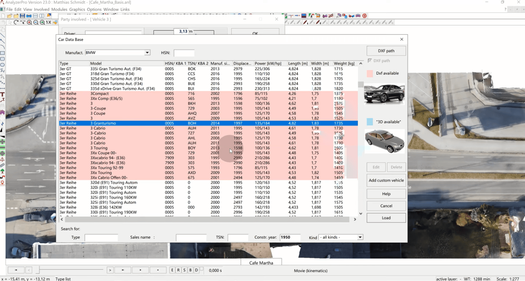 Step 2: Bringing in a Sketch. AnalyzerPro provides multiple options for creating a sketch of the collision. Users can directly draw using the available drawing tools or import photos by dragging and dropping them. Additionally, access to Google Maps is available. A modern and increasingly popular method is to use 3D photogrammetry or laser scans, which can be read into AnalyzerPro to generate both 2D images and 3D landscape representations.