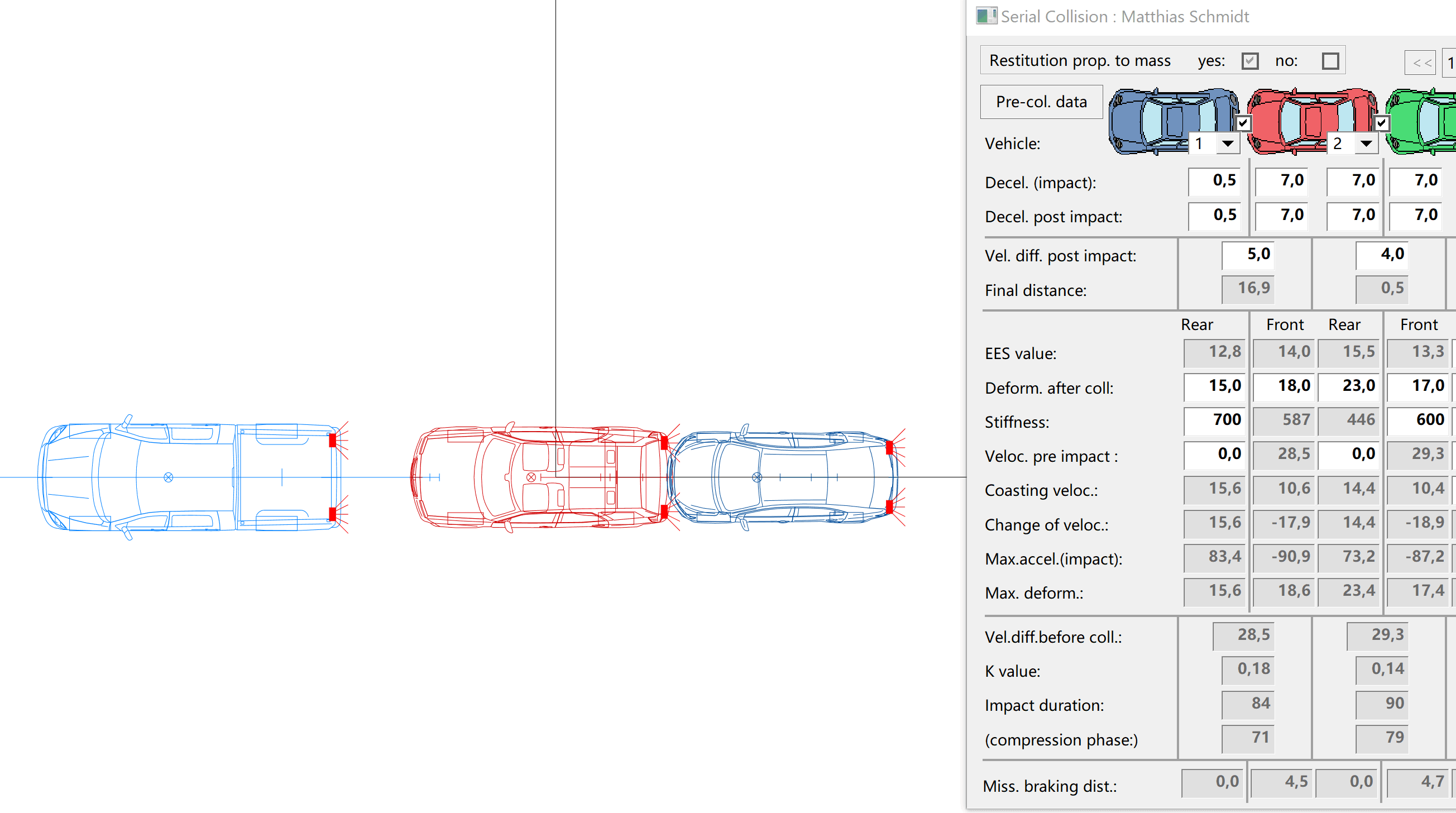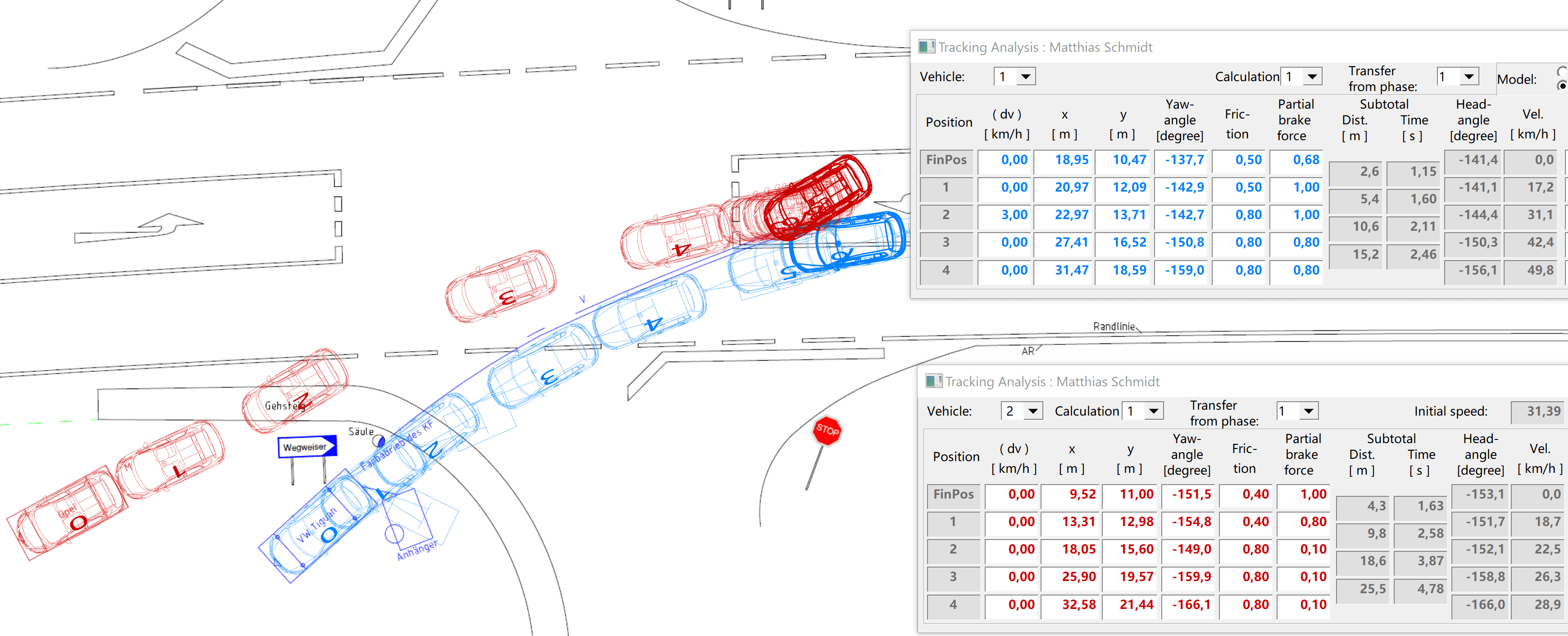 Una caratteristica eccezionale di AnalyzerPro è l’esportazione dei calcoli cinetici nel modulo di cinematica, risparmiando tempo prezioso. Dopo un’analisi di collisione riuscita, la fase pre-collisione può essere calcolata utilizzando il modulo di cinematica meno intensivo in termini di tempo.