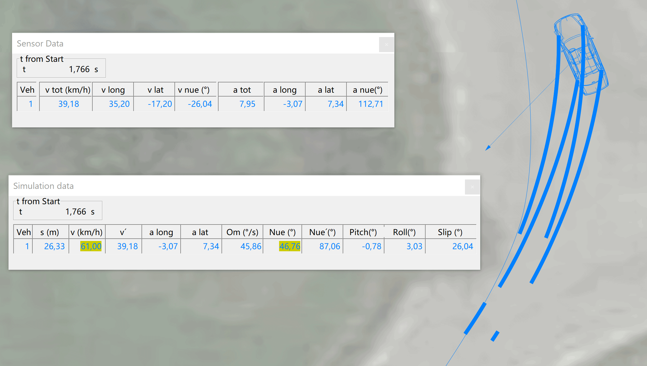 Il modulo di dinamica di guida esamina una serie di fattori, tra cui le condizioni del terreno, il comportamento di guida, i dati specifici del veicolo e le influenze ambientali.