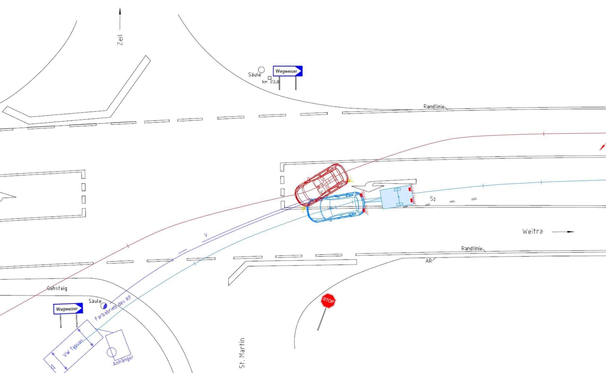 L’ampio set di strumenti di disegno di AnalyzerPro include anche strumenti per disegnare strade, incroci e rotatorie. Un database di segnali stradali consente di integrarli facilmente ed efficientemente negli schizzi 2D e 3D con pochi clic del mouse. Anche la posizionamento di veicoli, campioni di prove e posizioni finali avviene in modo agevole e preciso.